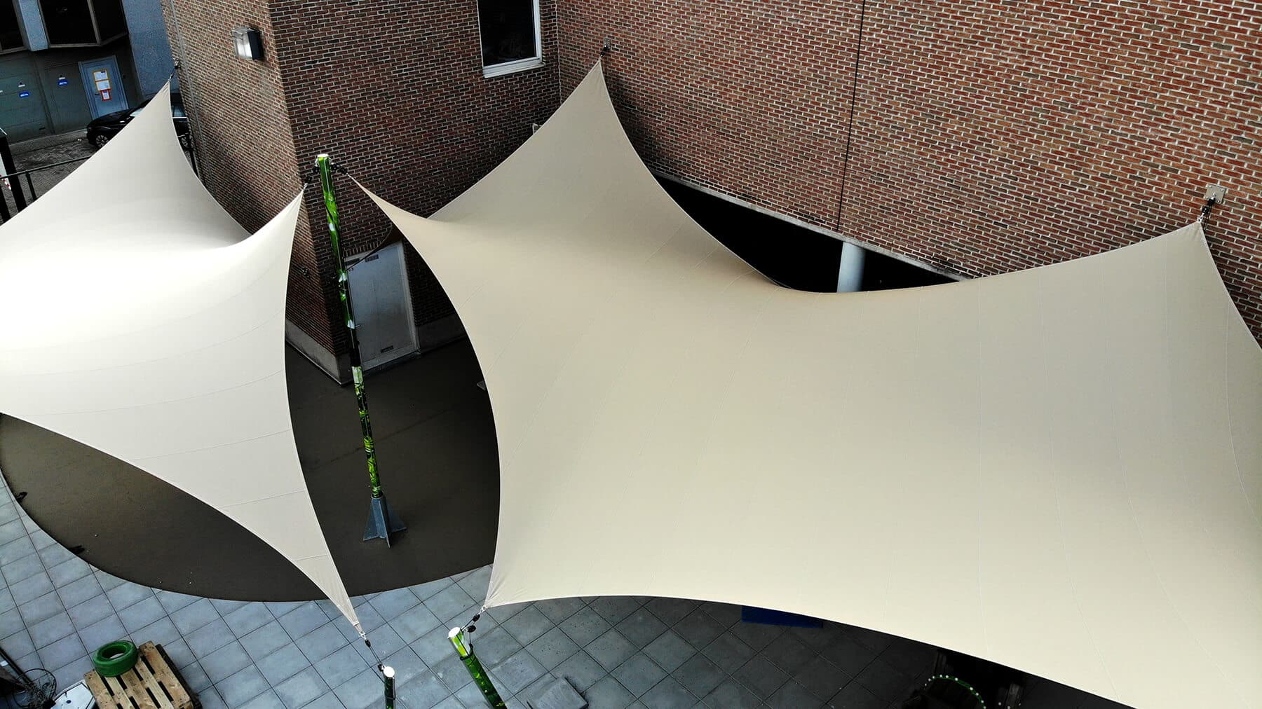 Instead of fighting the wind like a flat canopy, each membrane is sculpted to let air flow smoothly around and over it.