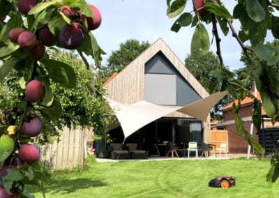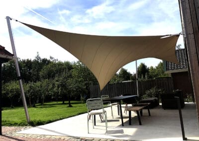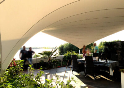 There is no other solution available that offers the same visual and functional options as a textile roof.  With our tensile fabric structures you can cover up large areas with minimal use of materials and energy. Although our solutions are lightweight and translucent, our structures are stronger than standard Shade sail solutions. A Texstyleroofs textile patio roof is not a shade sail but an actual roof.